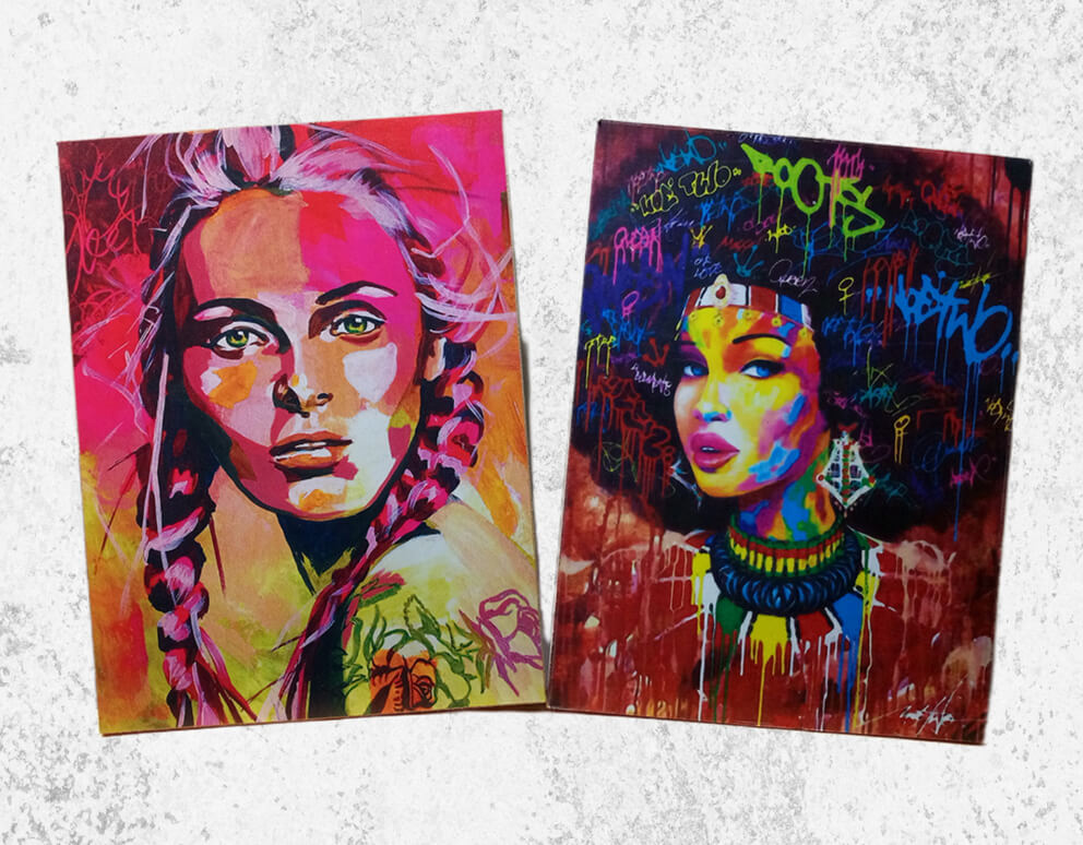 عدد 2 تابلوه خشبي، بتصميمات فنية متميزة، وألوان زاهية، لإضفاء لمسة جمالية لمكان تعليقها.